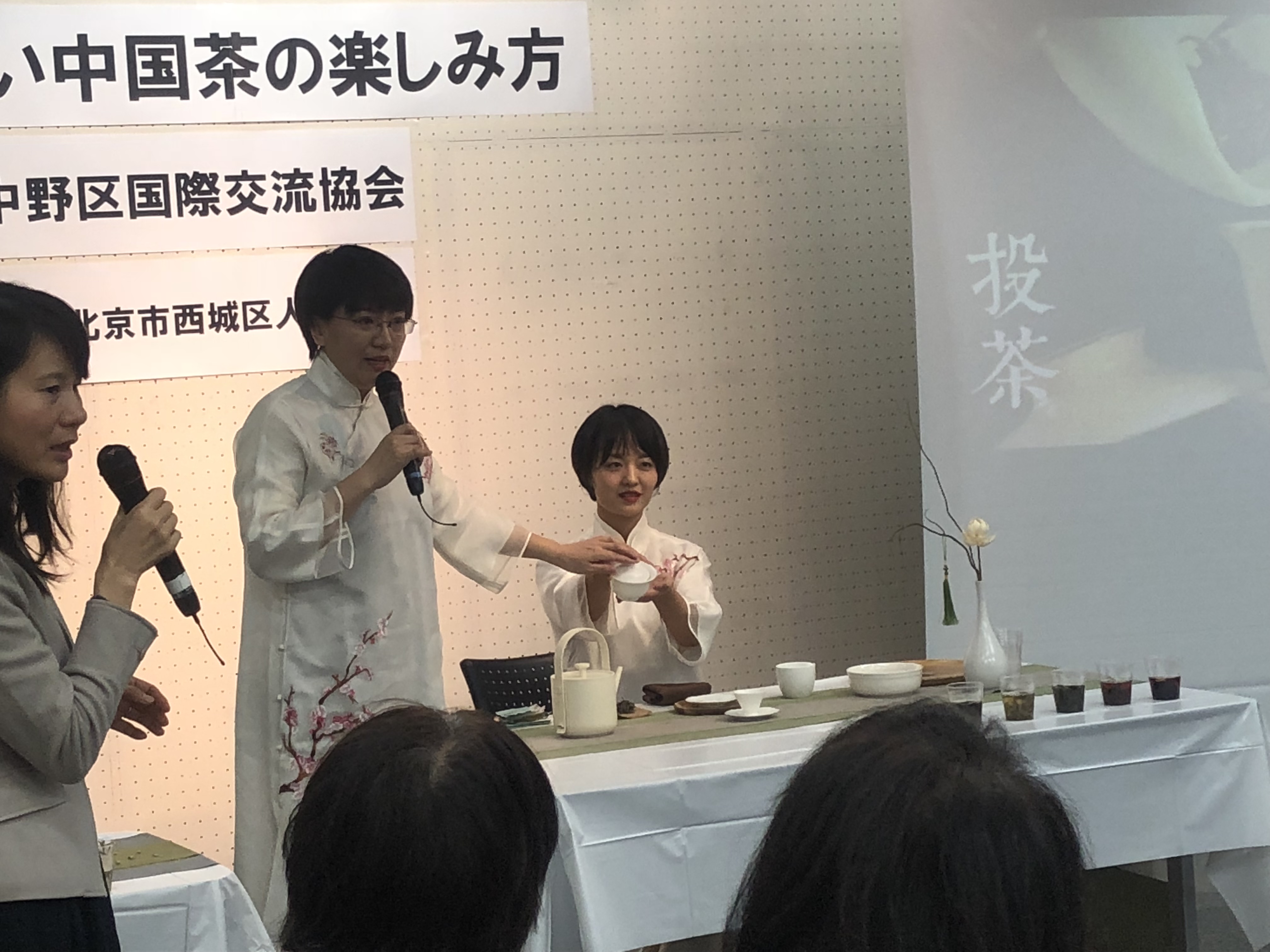 邀请了和中野区有友好区关系的北京市西城区内、被称为「茶芸师」的中国茶専家、挙辧了「甘美的中国茶的品尝方法」活动、约有30人来参加。
