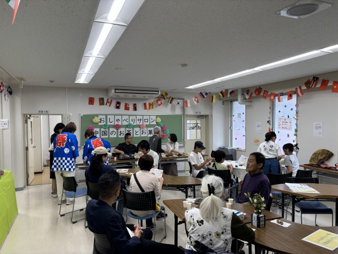 把时间分成两部分,前半部分让中国的日语学习者冲泡了中国茶,搭配了中国的点心;后半部分让法国的日语学习者烤了法国松糕,搭配了咖啡和红茶。