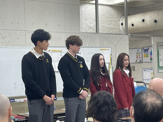 来自新西兰的短期留学生来到东亚学园,他们参加了1月份的星期二上午班和下午班,星期四儿童班的日语学习。短期留学生有来自威灵顿的男校威灵顿学院2人,来自威灵顿北部罗瓦哈特的女校塞克里德哈特学院2人。最后一天,他们就各自的体验“去原宿买了很多东西“、”去了天空树“、”便利店的鸡肉非常好吃”等发表了演讲。