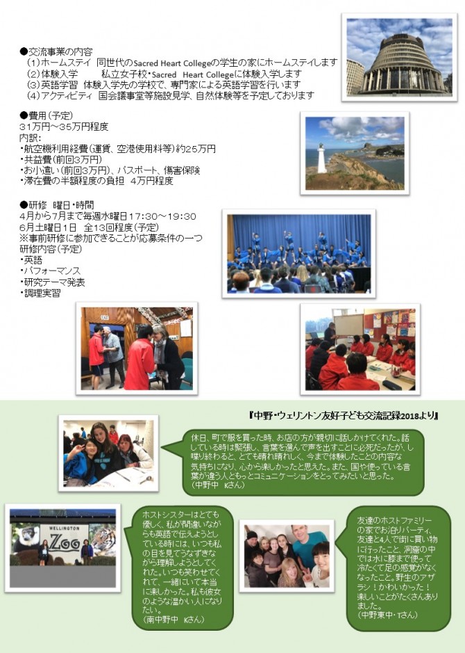 〇1週間(しゅうかん):NZの 中学校(ちゅうがっこう)で 勉強(べんきょう)します。