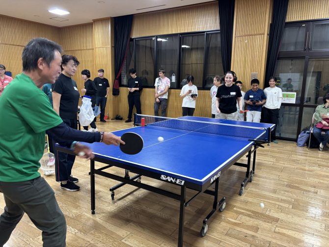 最後(さいご)に 試合(しあい)を しました。中国(ちゅうごく)の 日本語(にほんご)学校(がっこう)の (ひと)が 一番(いちばん) でした。小学校(しょうがっこう) 4年生(ねんせい)から 卓球(たっきゅう)を していました。(ほか)の 中国(ちゅうごく)の 日本語(にほんご)学校(がっこう)の (ひと)は「東京(とうきょう)2025デフリンピック」の ボランティアに (もう)()み しました。それで、手話(しゅわ)を 勉強(べんきょう)して います。」と ()っていました。ですから、手話(しゅわ)でも (はな)しました。()た (ひと)は (みんな)仲良(なかよ)く なりました。