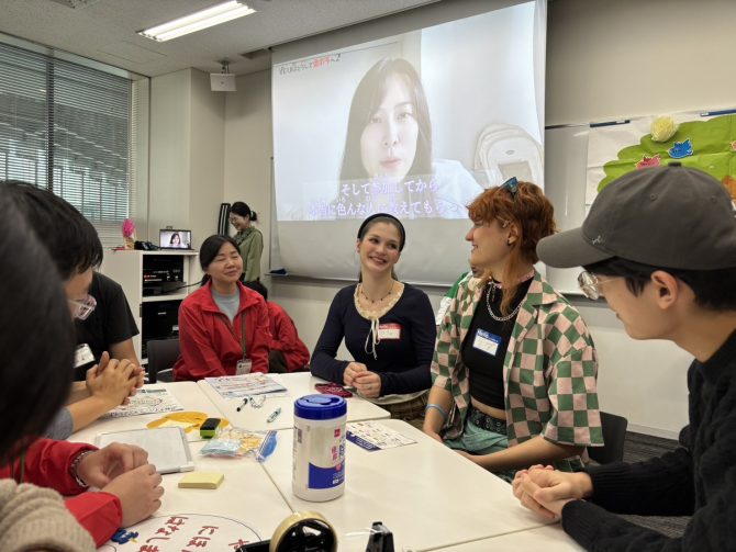 ③「日本語で 話しましょう。」を しました。オンラインで インドネシアの ボランティアも 話しました。