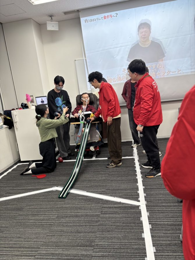 ボッチャでは「ランプ」を 使いました。「ランプ」で 手が 悪い 人も ボッチャが できます。金曜ボランティアの 人も はじめて 見ました。難しかったです。