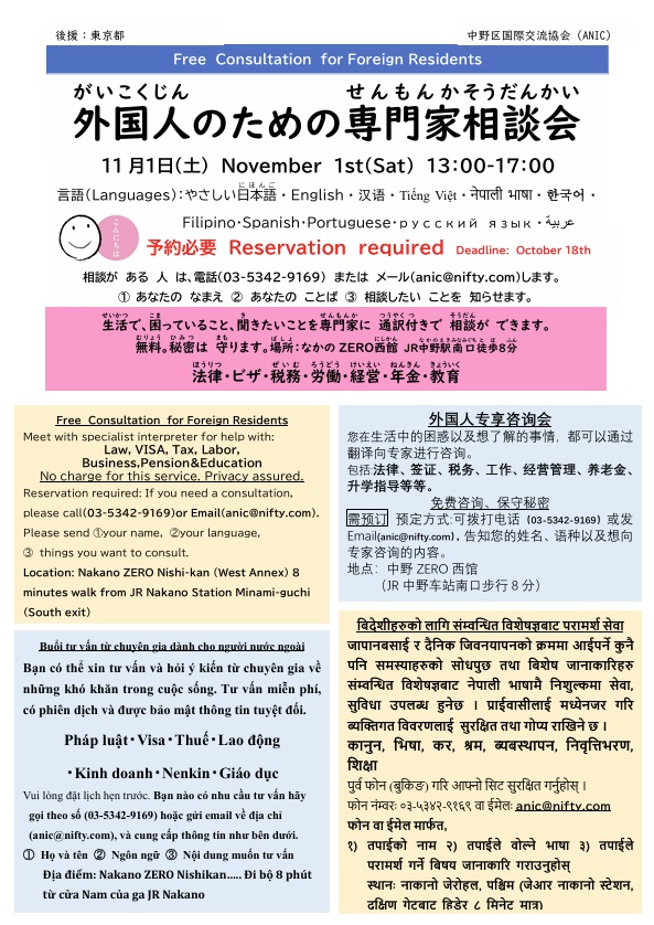 있는 것, 묻고 싶은 것을 전문가에게 통역을 통해서 상담할 수 있습니다.