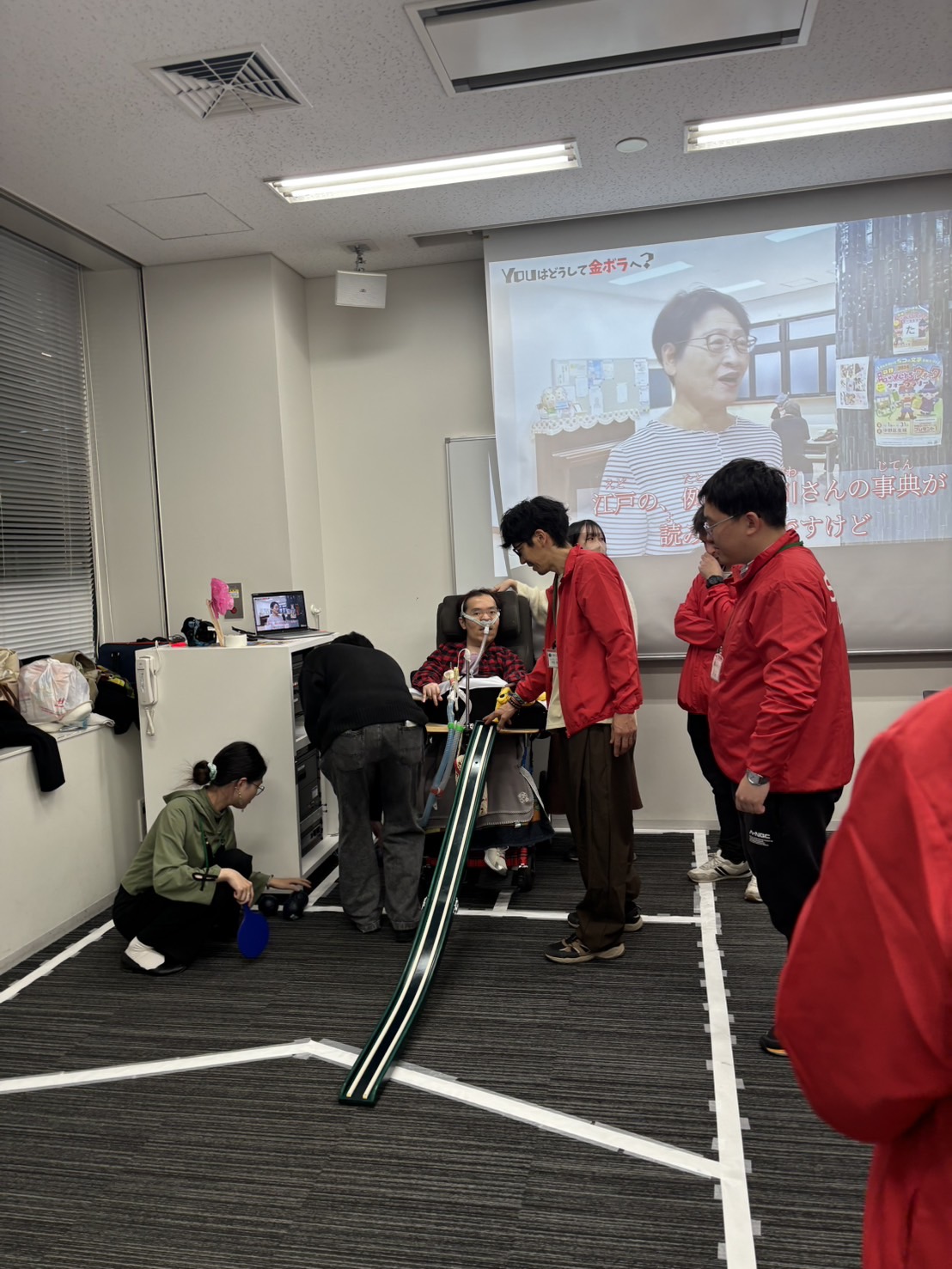 ボッチャ体験では「ランプ」という器具を使い、身体が不自由な方も一緒に出来るように準備しました。ボランティアのメンバーも初めて見る「ランプ」に意外とコツがいると感想を言っていました。